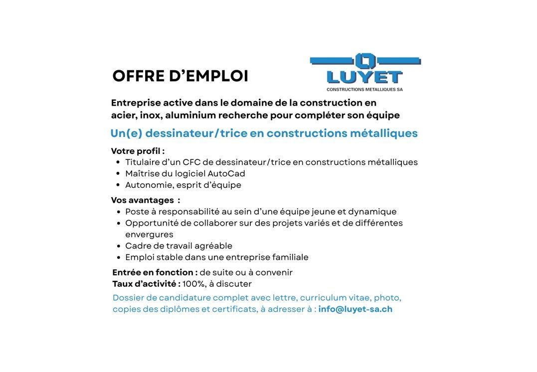 Bienvenue sur le site de Luyet Constructions Métalliques SA où vous en apprendrez plus sur l'ensemble de nos services et prestations.